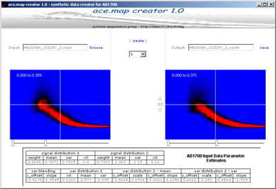 The lognormal signal distribution of high-sensitivity Applied Biosystems AB1700 transcriptome data needs to be represented by two independent distributions (Noth et al. 2006b). Furthermore, the signal-dependent variance distribution also is a non-trivial function of signal intensity. We presented a combined signal/variance distribution model for AB1700 data. This model can be efficiently used to generate synthetic datasets with virtually identical statistical properties when compared to actual data using the JAVA application ace.map creator 1.0